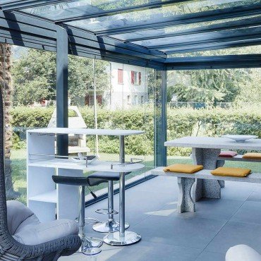 Nach einem Jahr ist der Neubau abgeschlossen, der Sitz der Firma ist auch heute nach wie vor hier. Was Ideen und Materialien betrifft, bemerkt man eindeutig den Beitrag der Firma Vetreria Beffa.